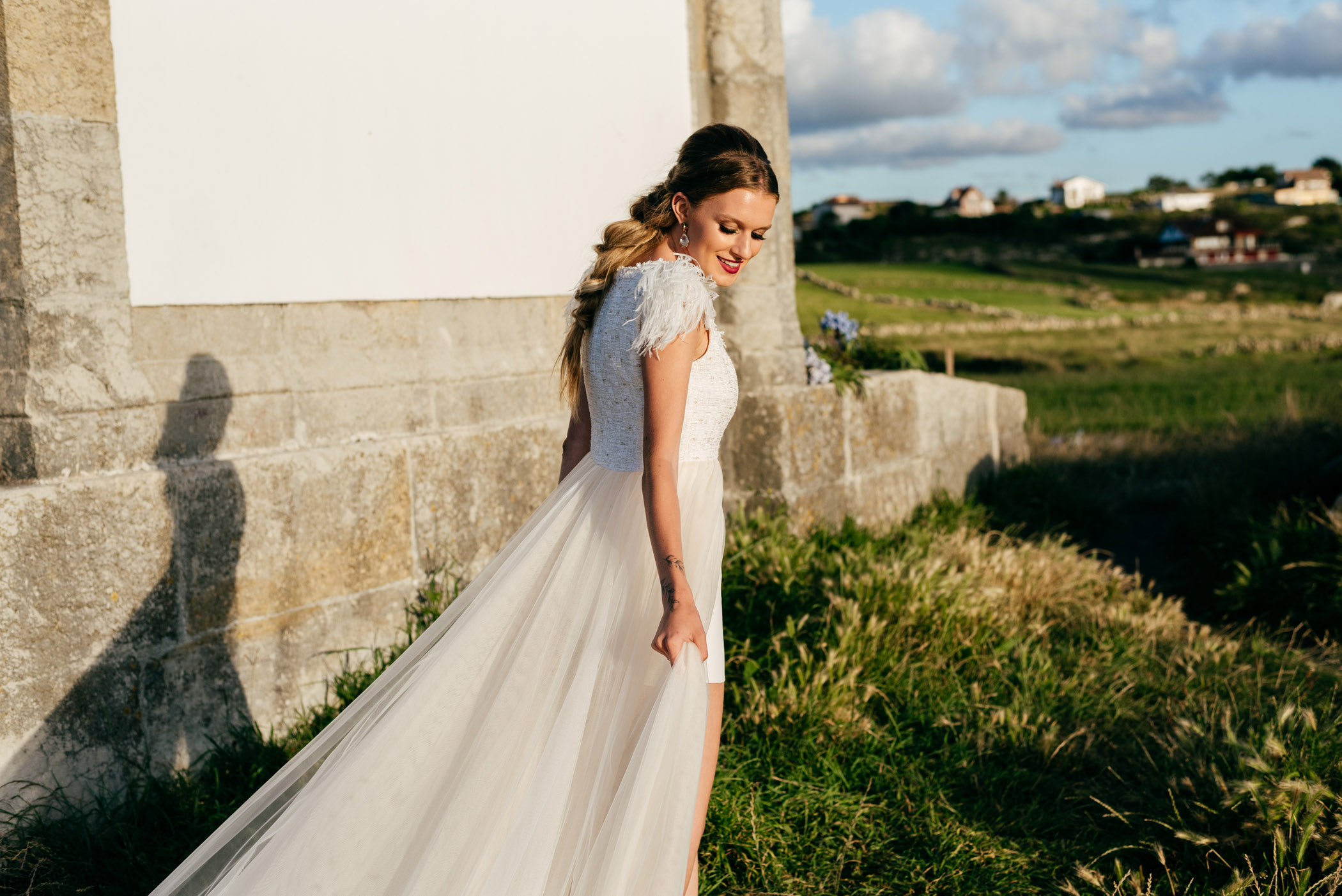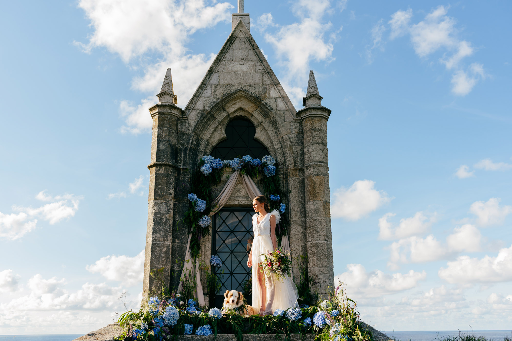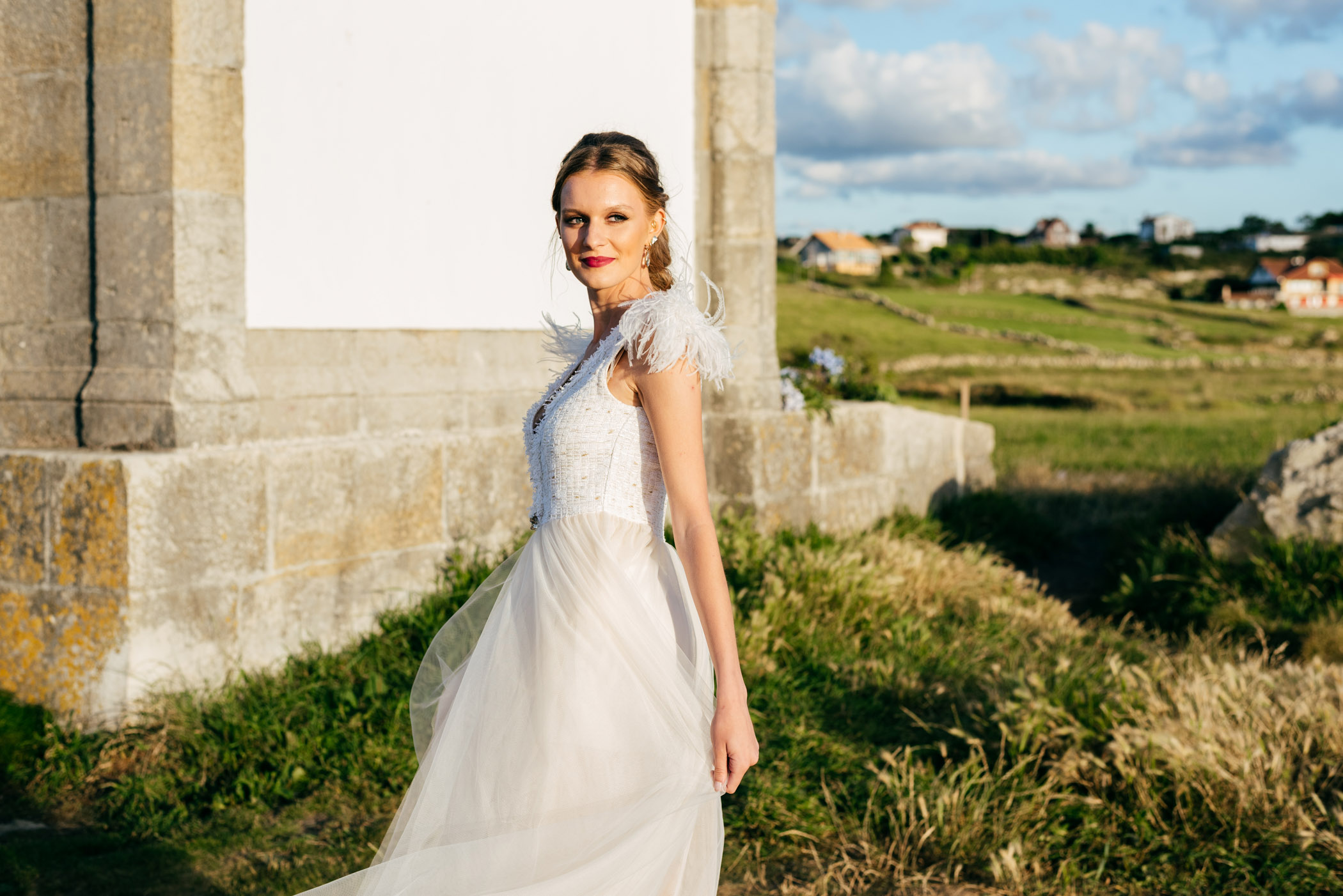 La impresionante decoración floral y el ramo de novia fueron creados por Roberto de Harvest wood & flowers. Y por supuesto, el escenario elegido es sin duda el gran protagonista de la sesión, bendecido por la magia de la luz del norte, nuestro mar y nuestro cielo.