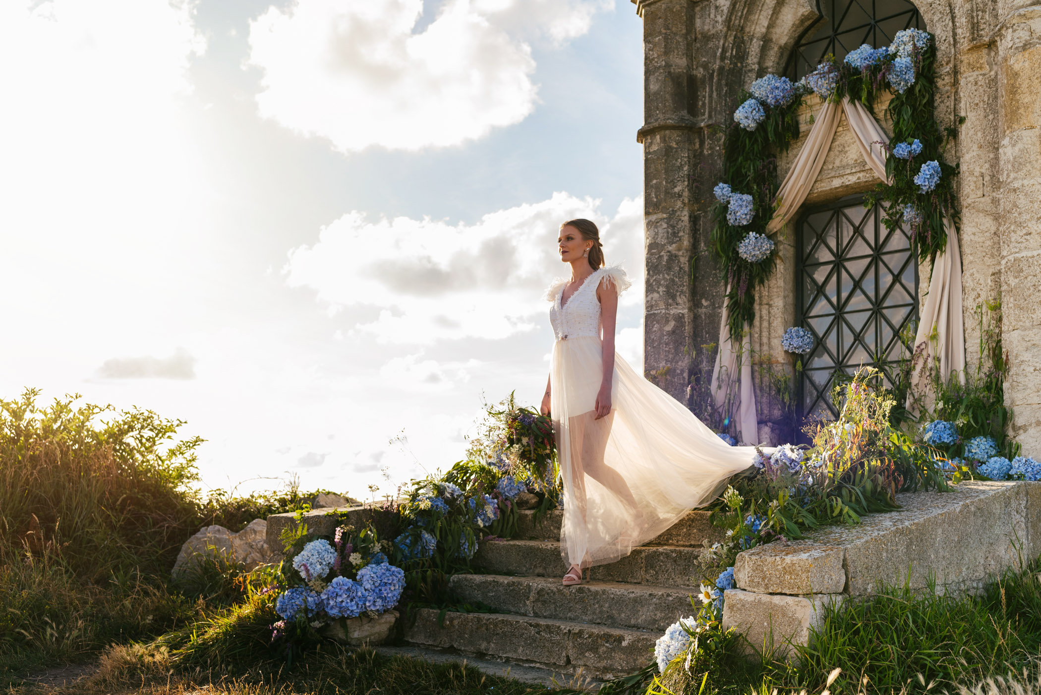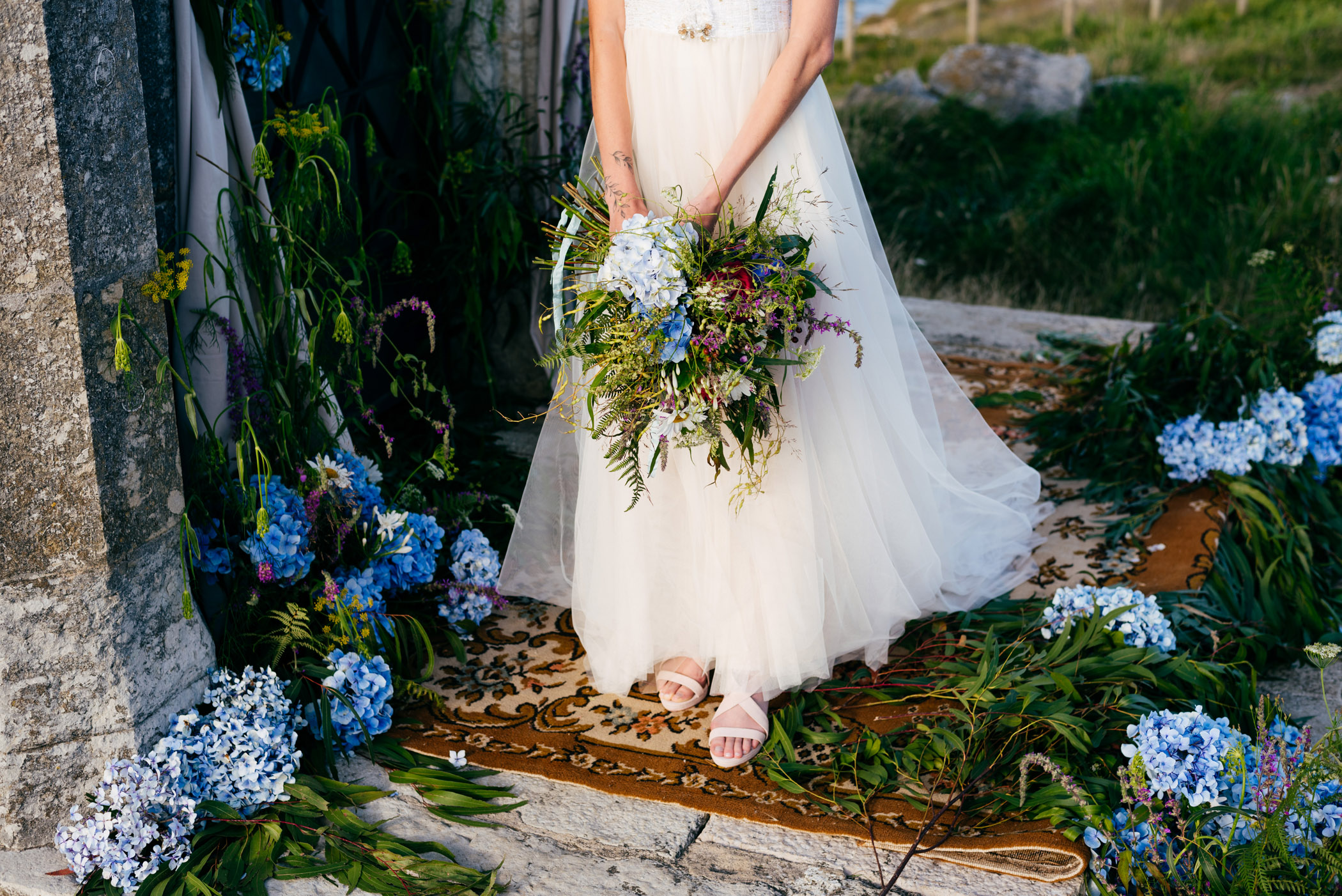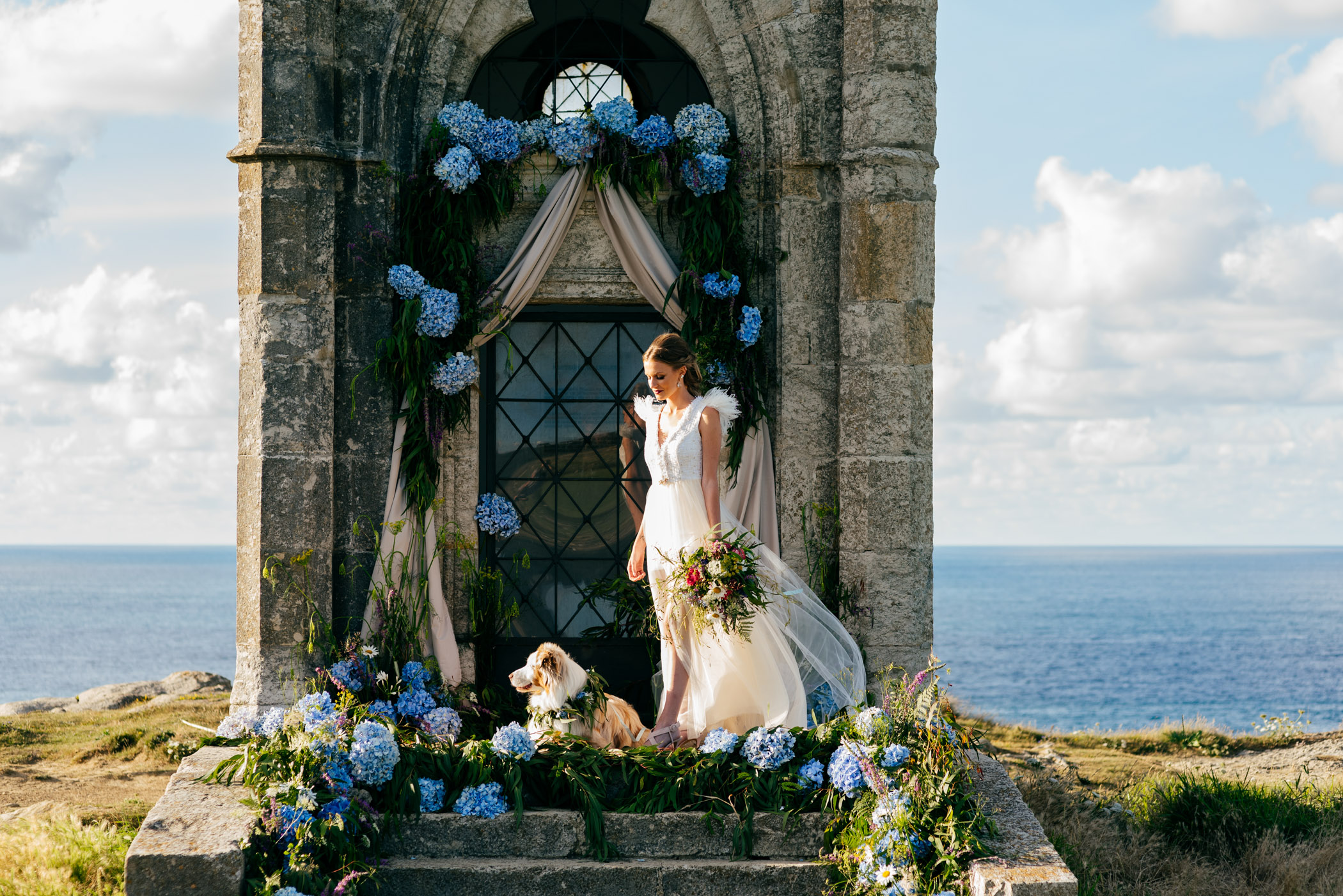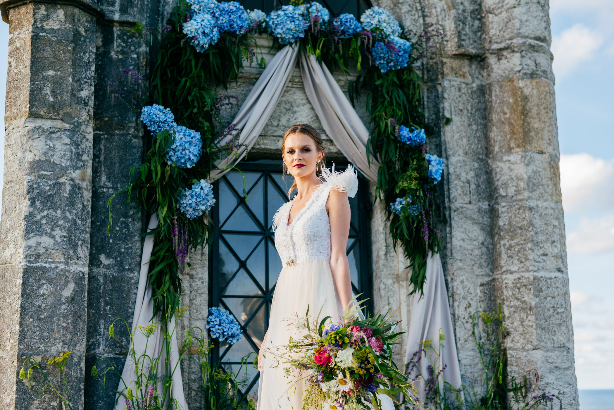 La impresionante decoración floral y el ramo de novia fueron creados por Roberto de Harvest wood & flowers. Y por supuesto, el escenario elegido es sin duda el gran protagonista de la sesión, bendecido por la magia de la luz del norte, nuestro mar y nuestro cielo.